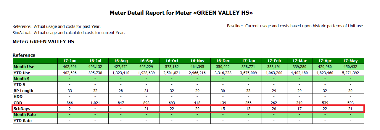 The Meter Detail report will now include rows for custom variables used in your meter tunings. These rows will appear below the CDD/HDD rows in the report, when applicable:
