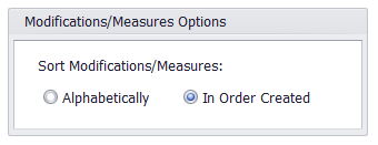 Modifications and Measures may now be sorted either alphabetically or chronologically in order created. This project-wide option can be accessed via the Project Settings menu: